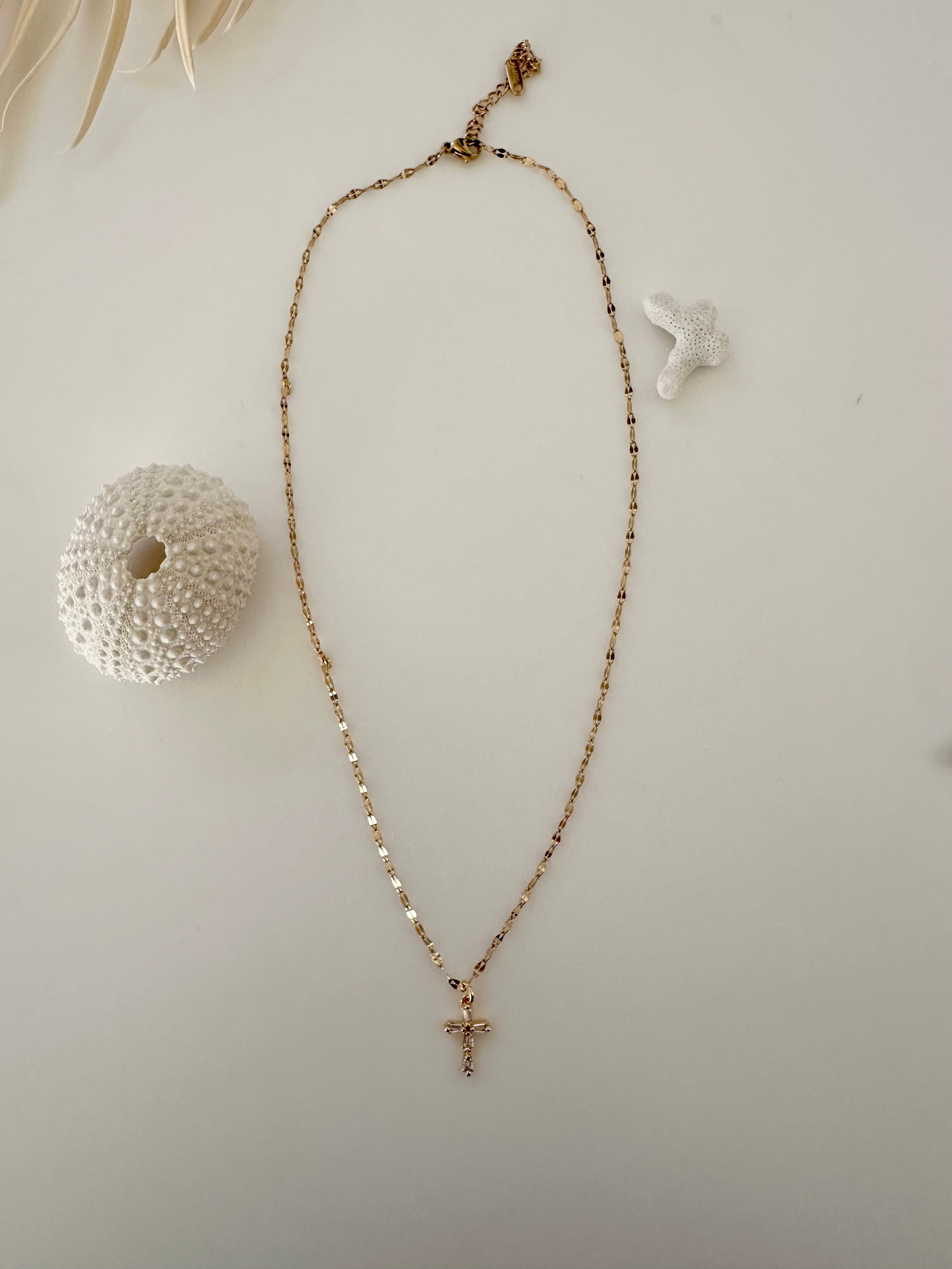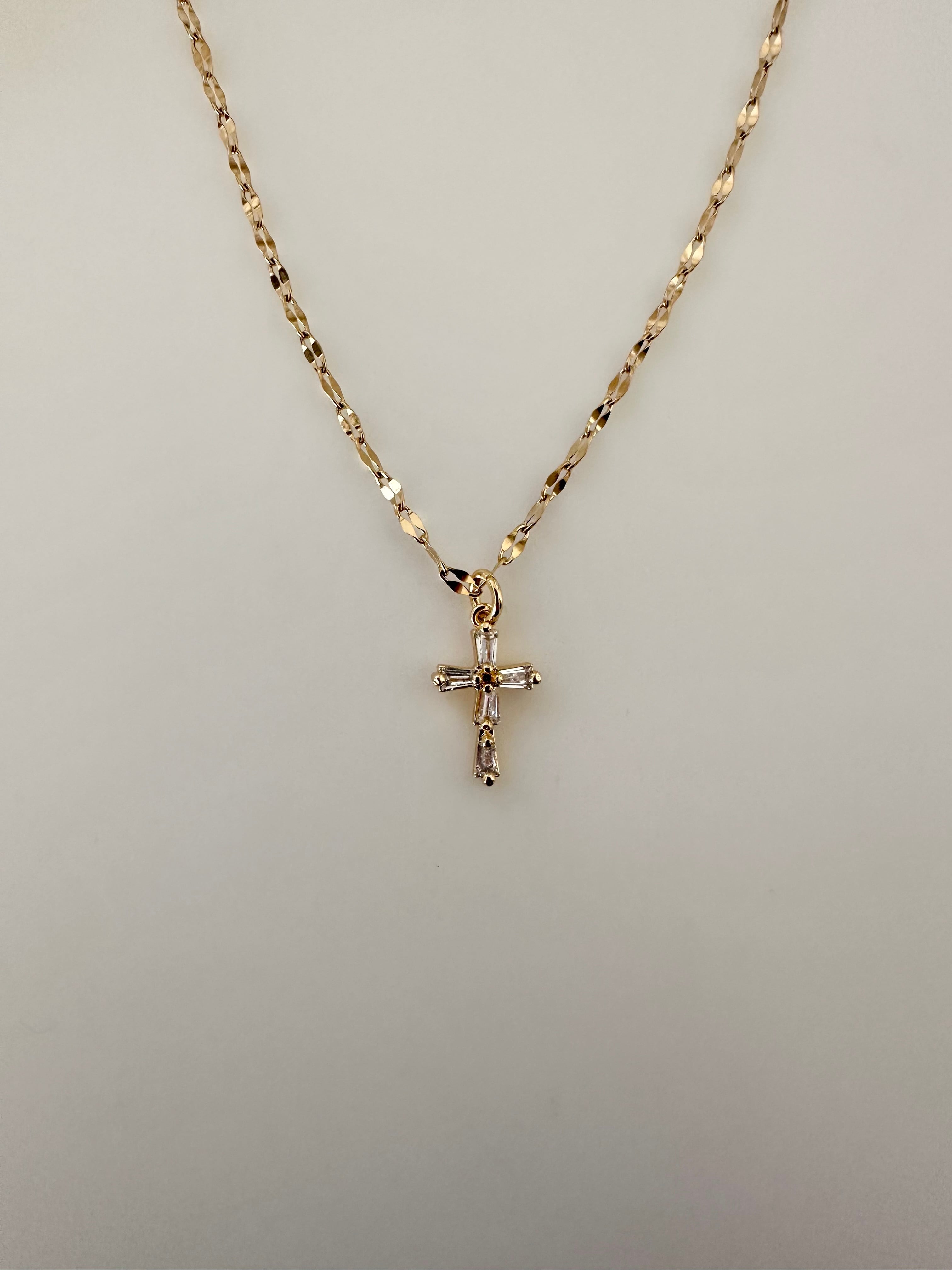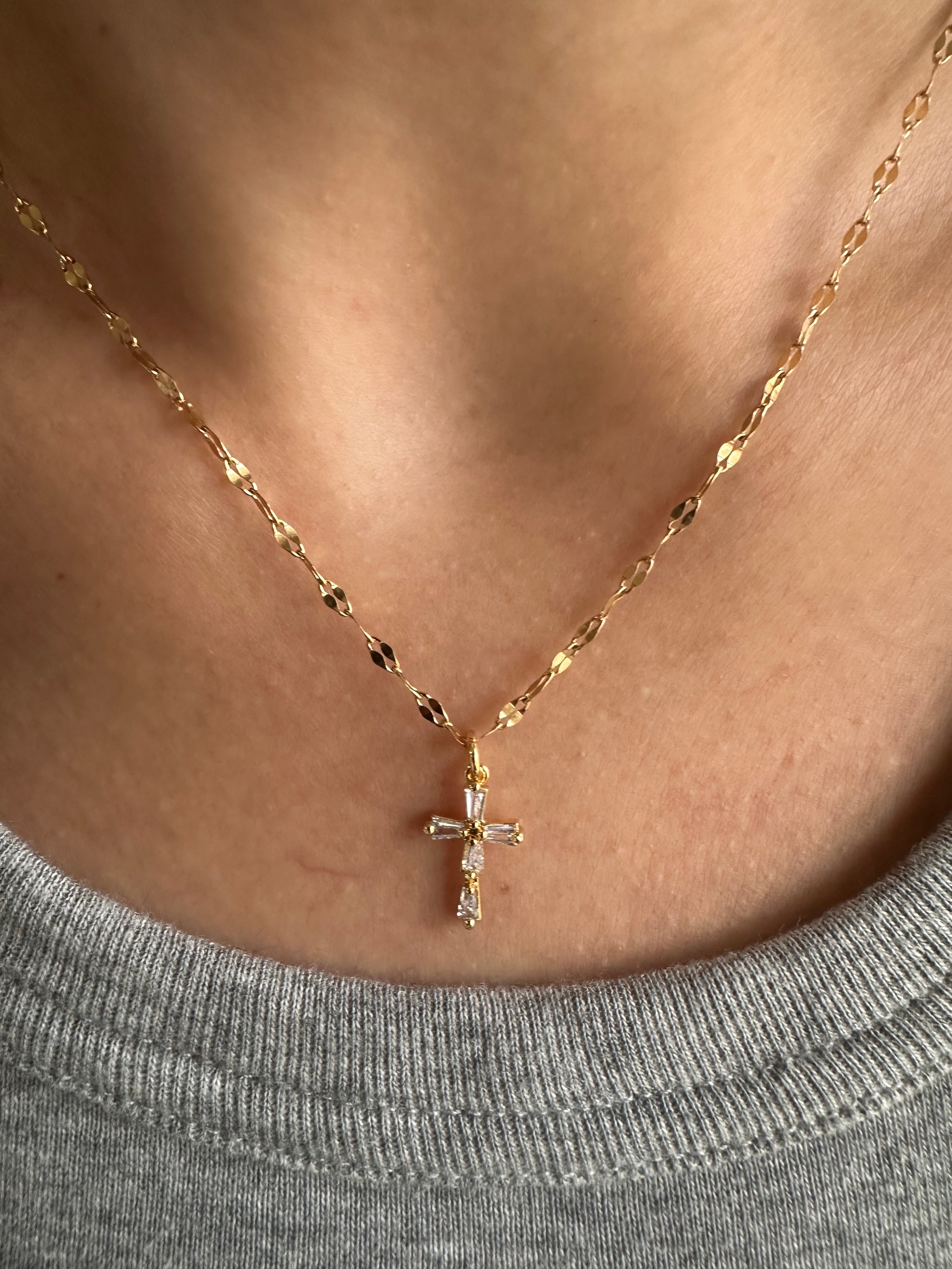 シンプルでいて存在感のあるクロスデザインのネックレス。