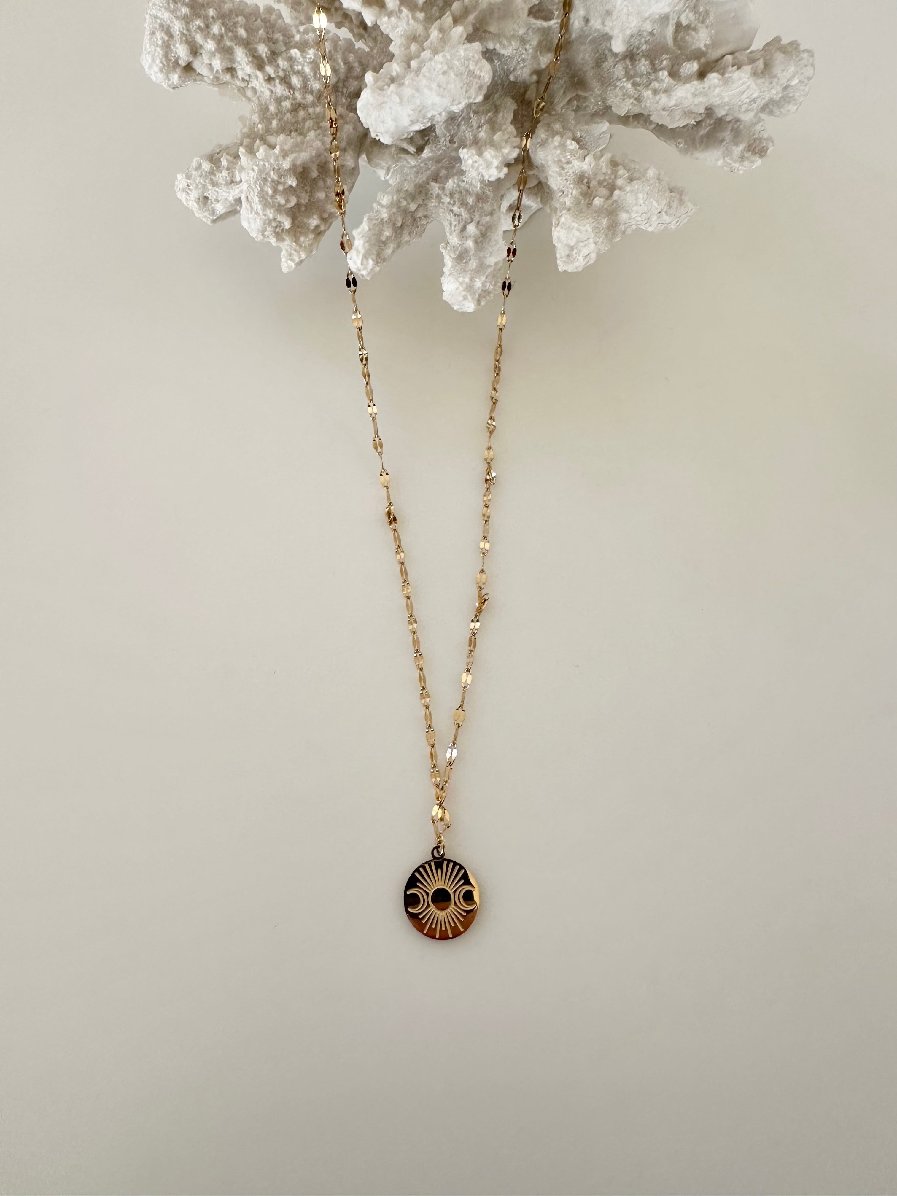 太陽と月が描かれたラウンドチャームのネックレスです。