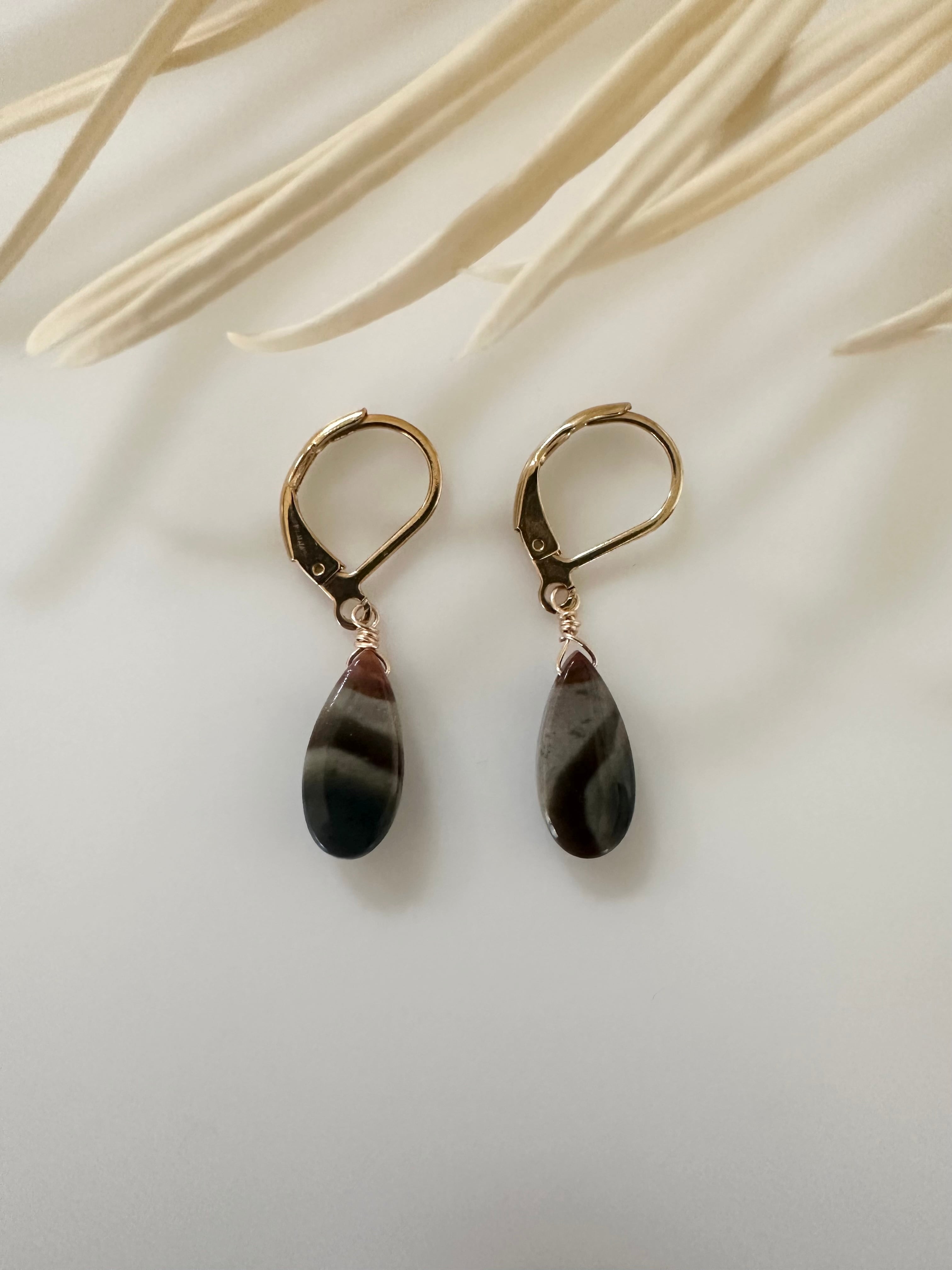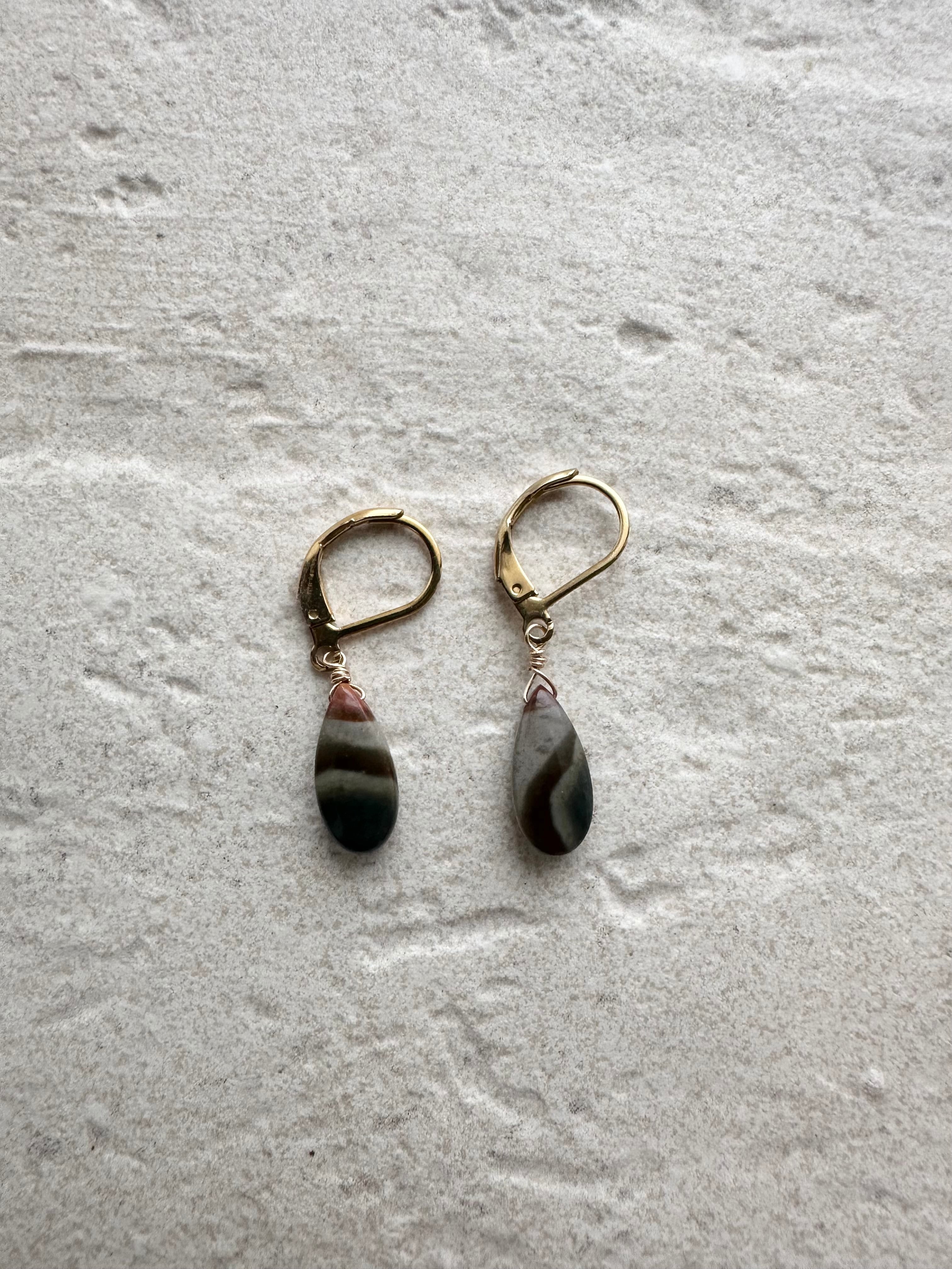 その両方を感じさせるポリクロームジャスパーのドロップピアス。